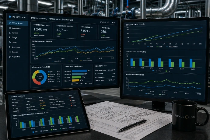 Analyse des consommations, identification des dérives, compréhension des écarts entre performances théoriques et réelles.